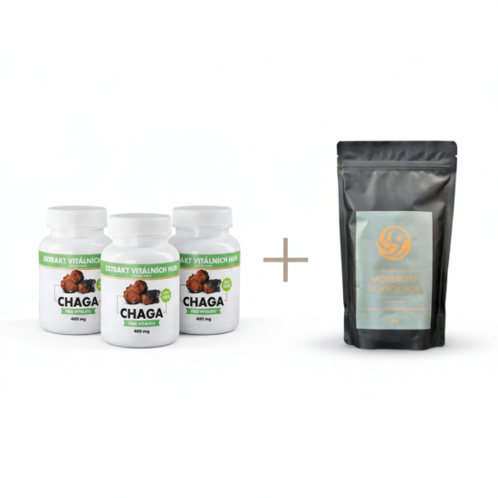 Výhodné balení Chaga (3X Chaga 120 kapslí + Houbová káva "Moudrost Tichých Hor" ZDARMA)